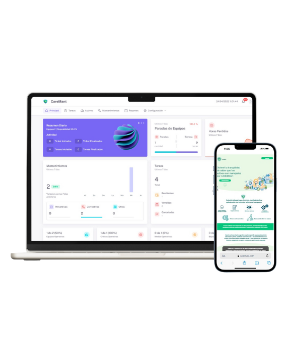 Caremant controla todos los aspectos de la gestión de activos, desde el inventario y el mantenimiento hasta las tareas operativas, proveedores y reportes, en una sola plataforma integrada.